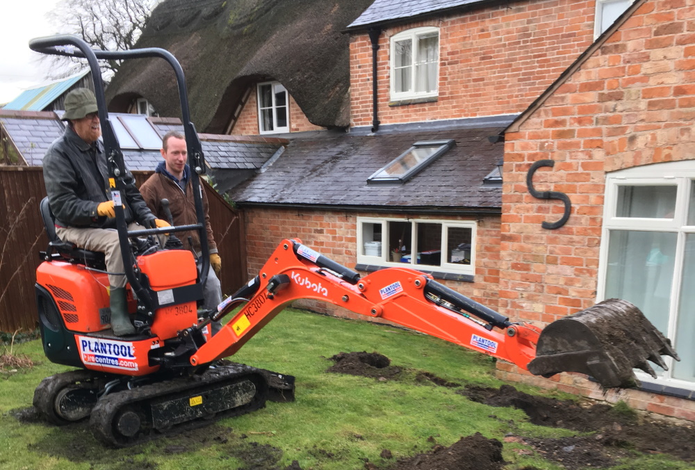 Bob meet us at the airport. He pitch a tent in the garden in Egham and three